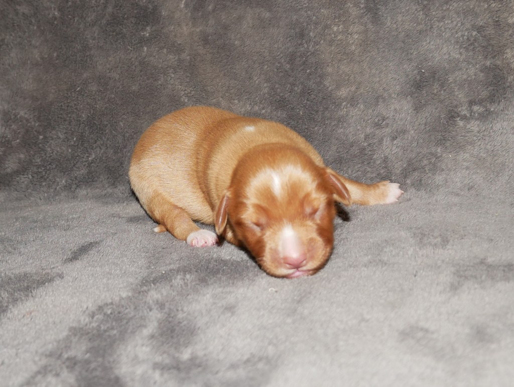 Week 1 is here already! Everyone is doing great – eating, growing, and sleeping as they should! Mama has recovered well and is enjoying motherhood again! We have a pretty good mix of boys/girls, white and no white – looking forward to watching these pups grow up!