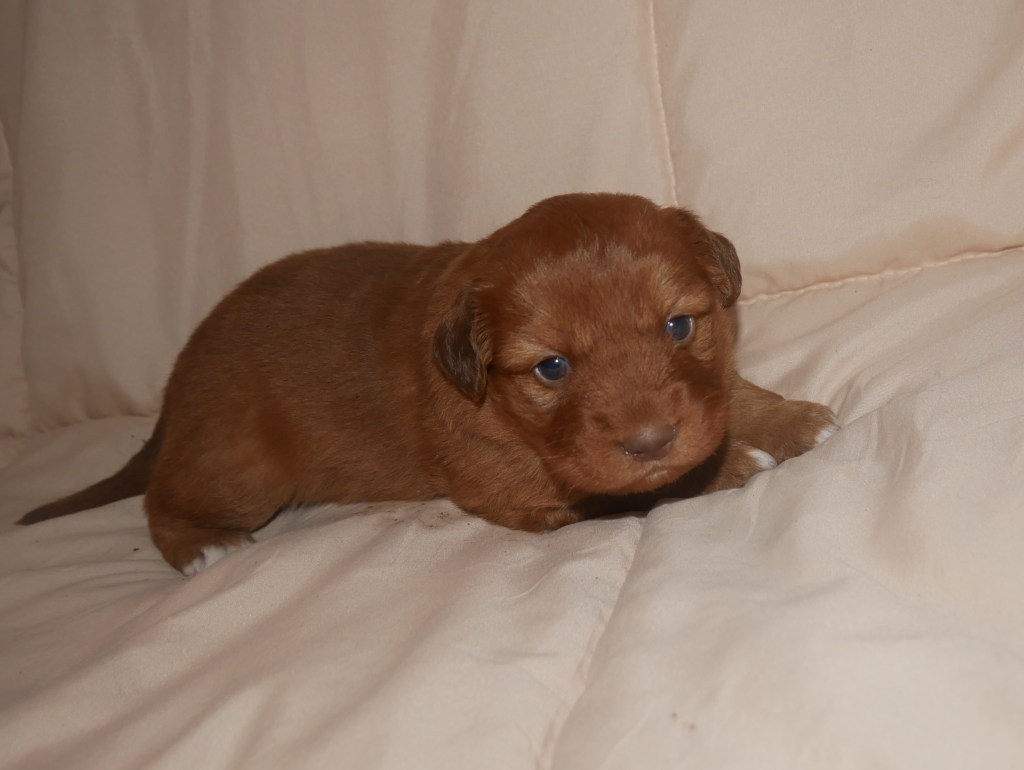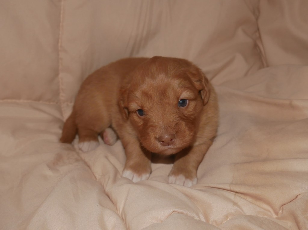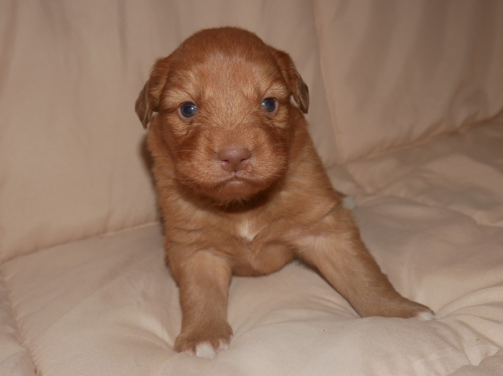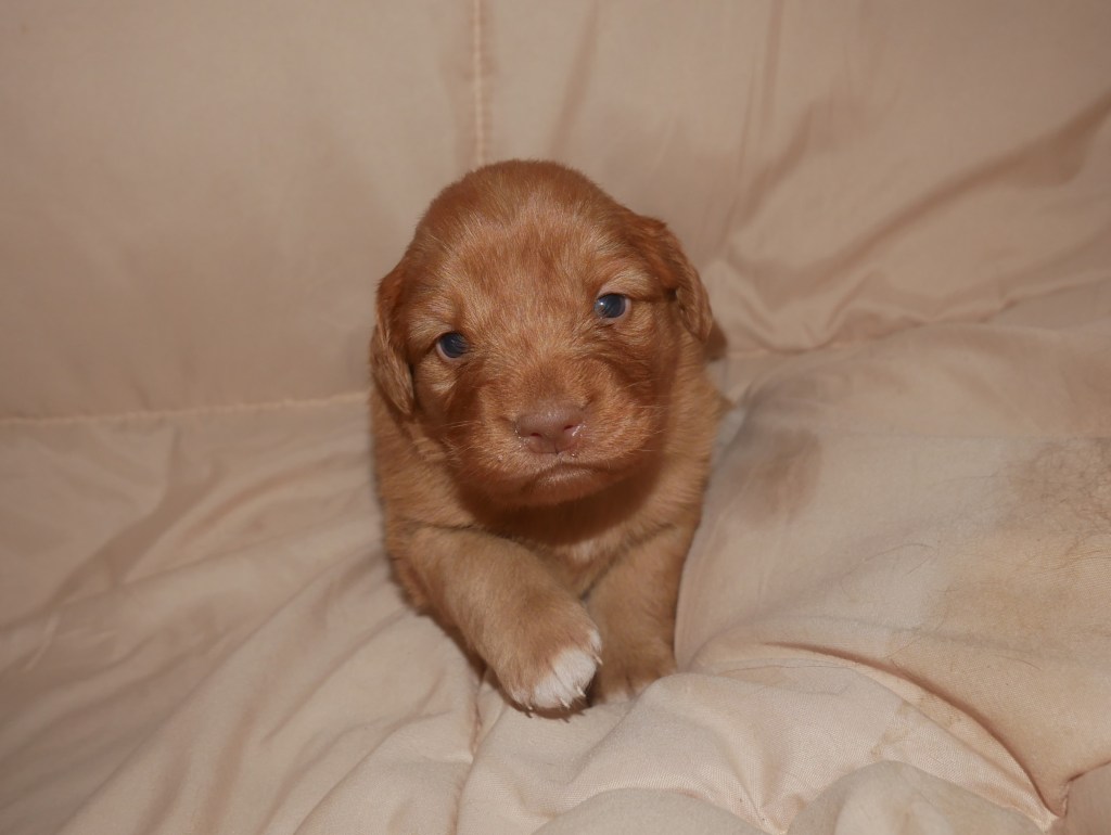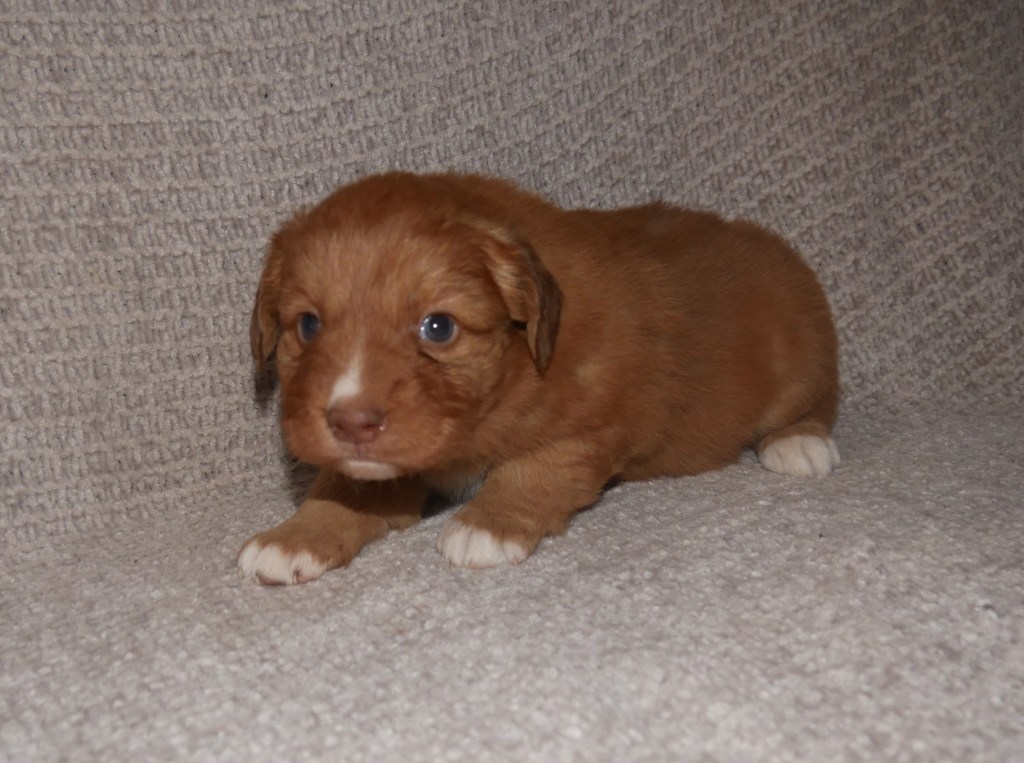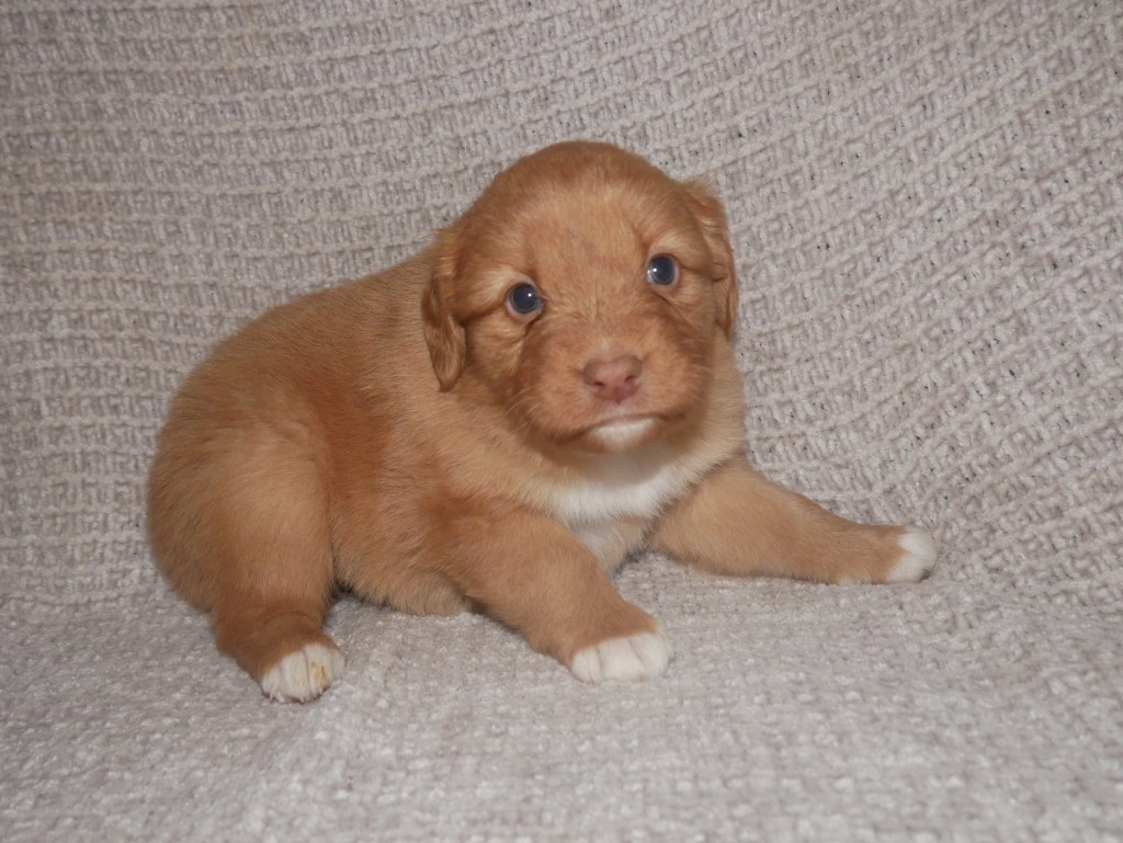 Week 5! This is a big week for us! We will start going outside and the puppies will start on softened kibble! Looks like we have a great week with some great weather! We are looking forward to it!