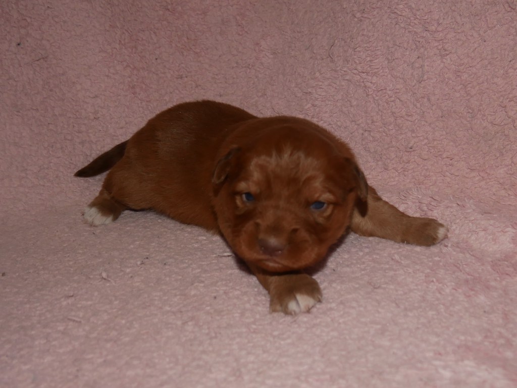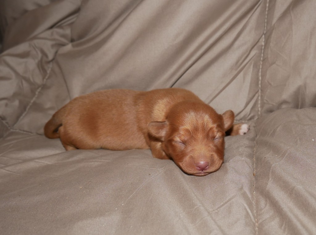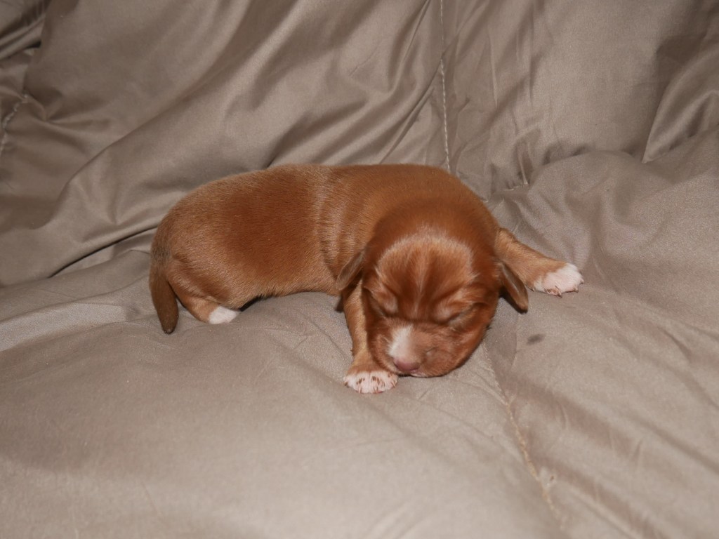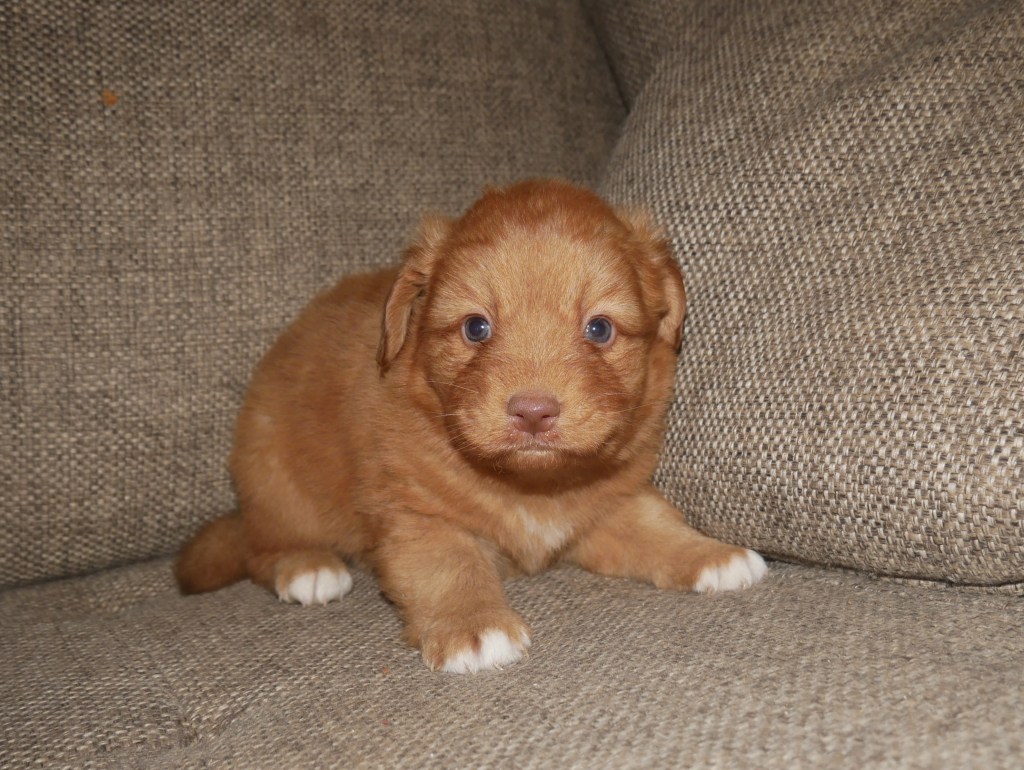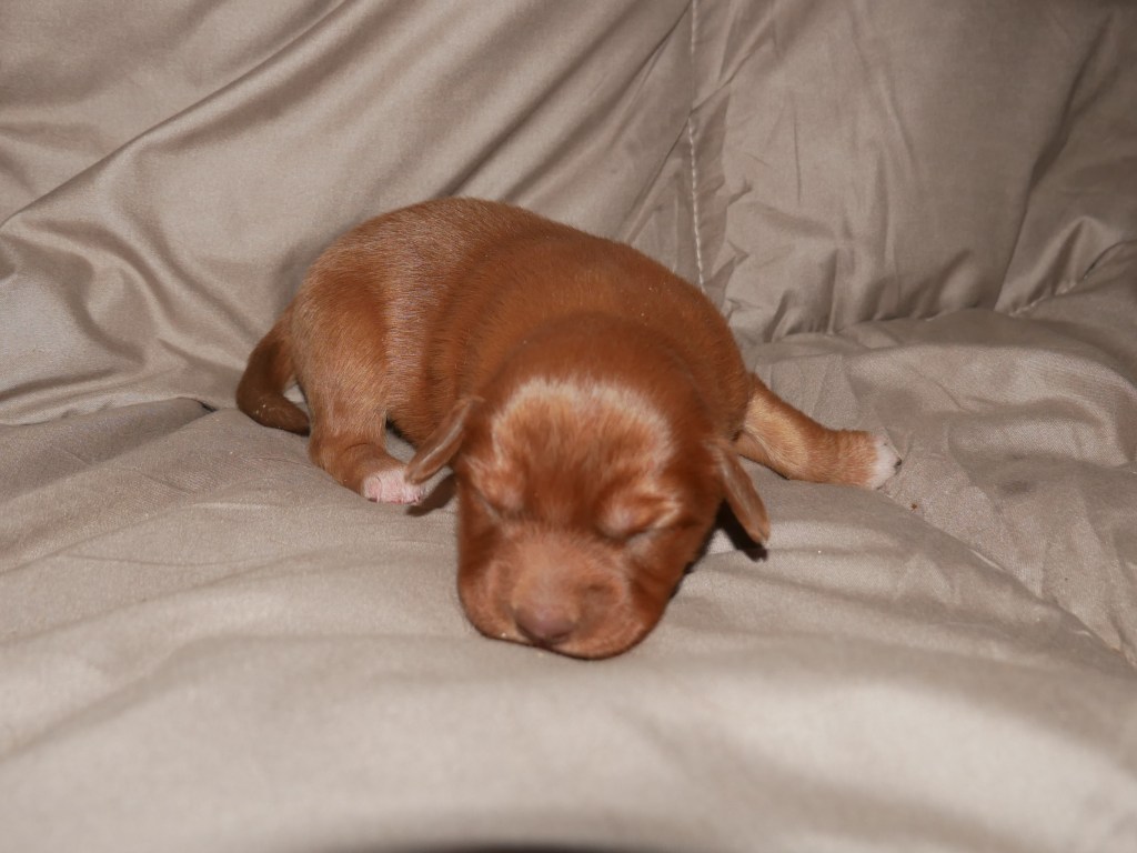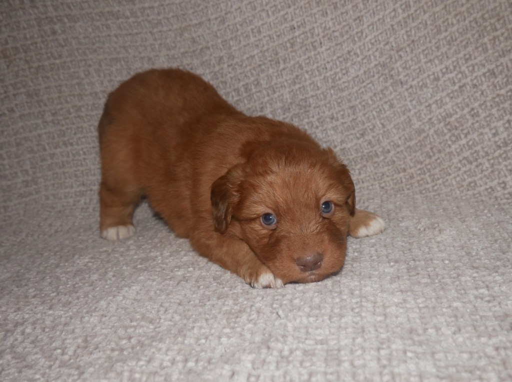 Week 5! This is a big week for us! We will start going outside and the puppies will start on softened kibble! Looks like we have a great week with some great weather! We are looking forward to it!