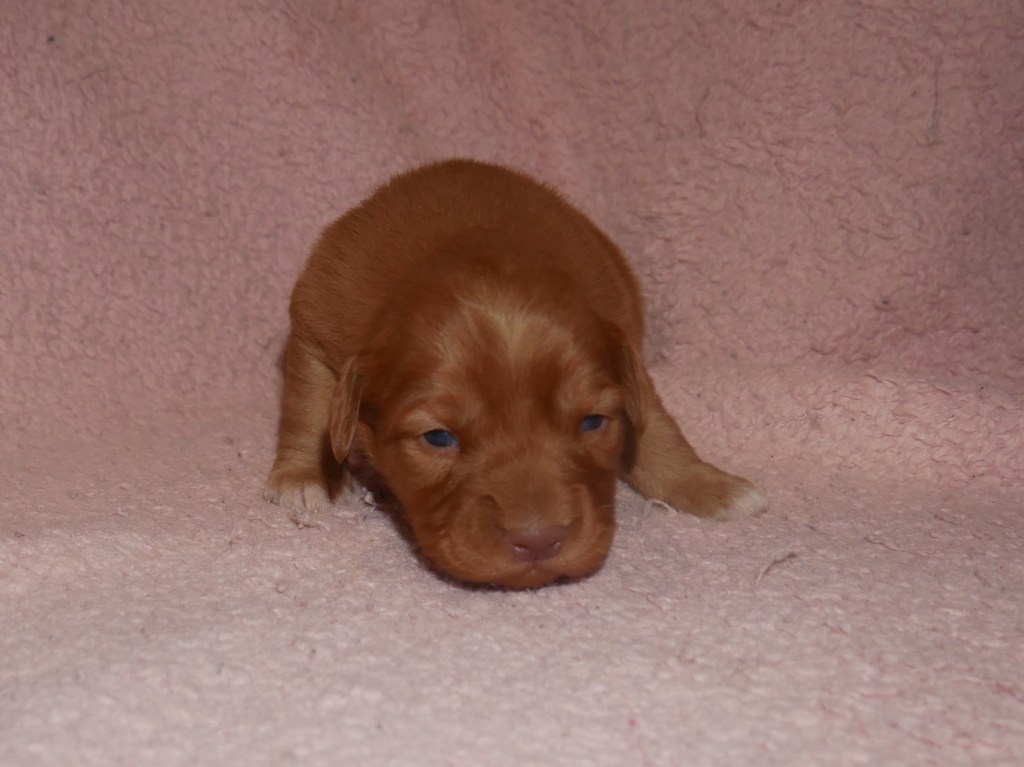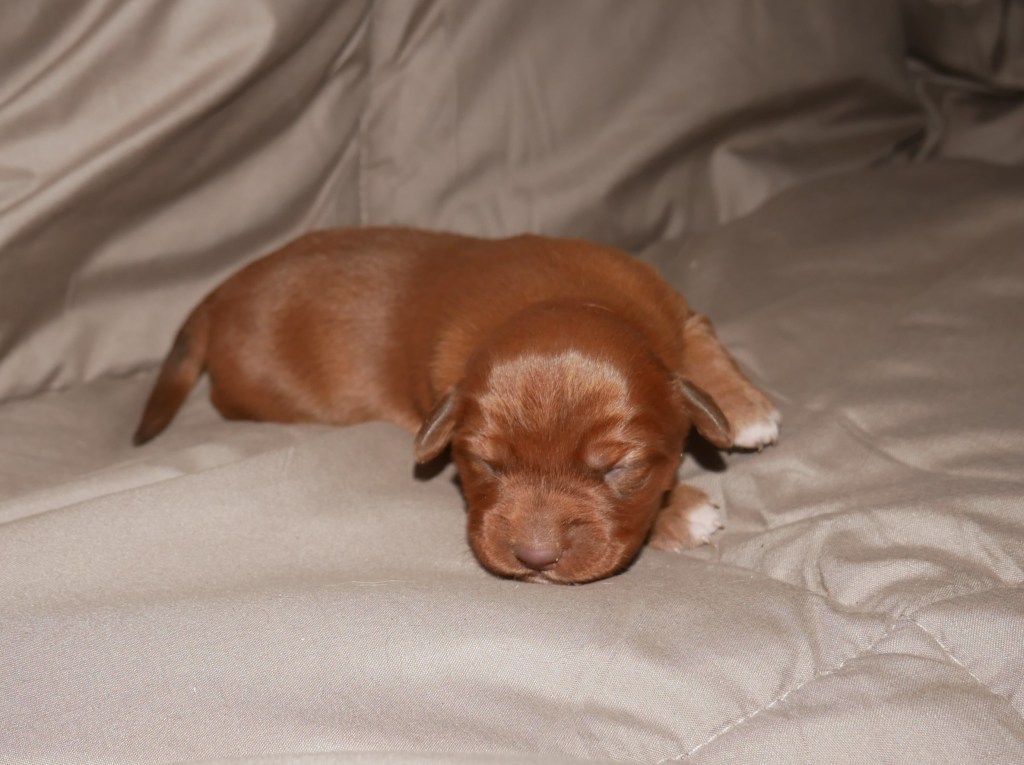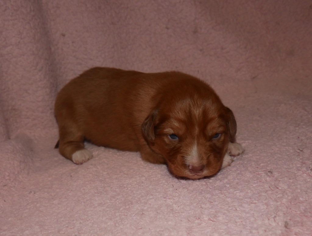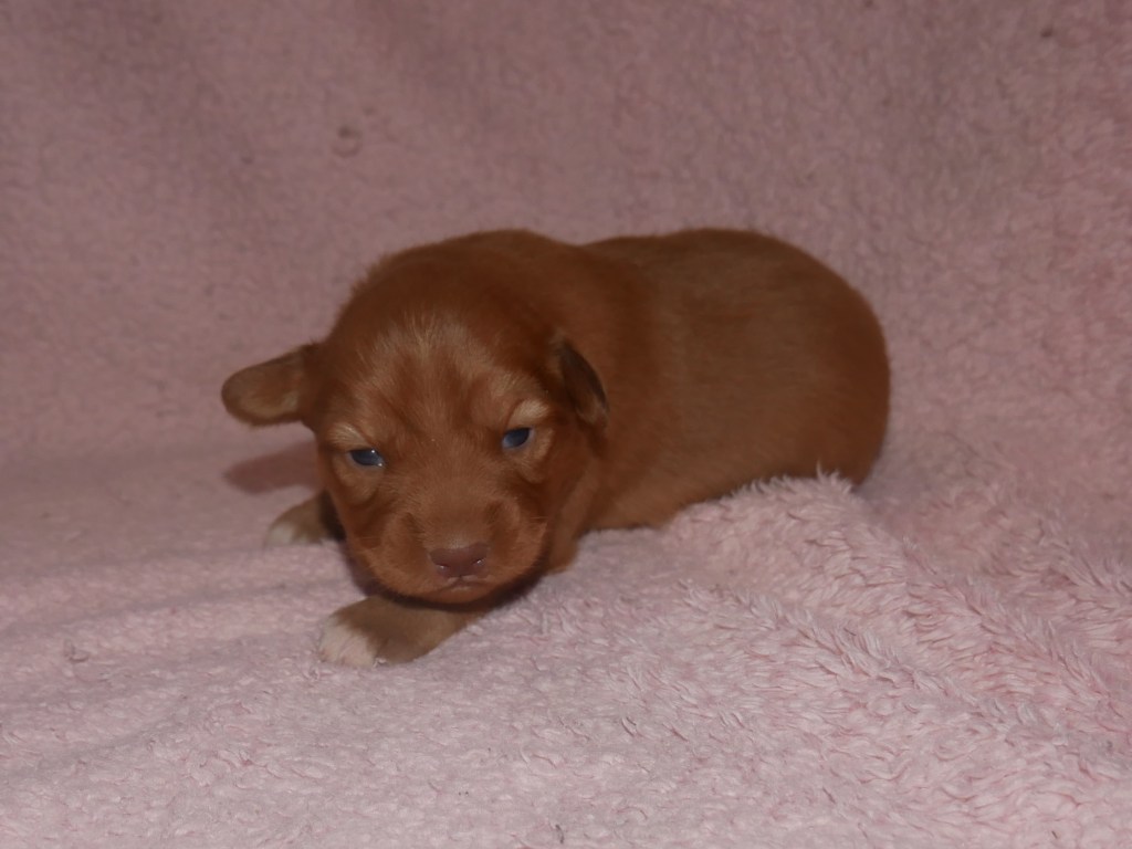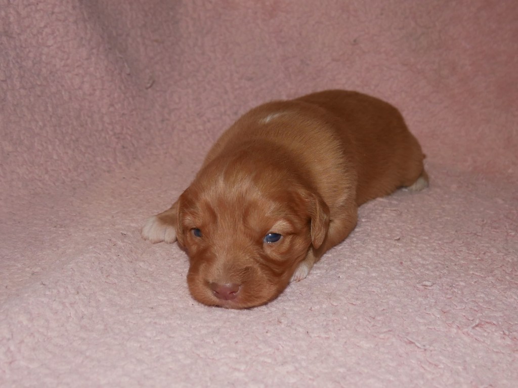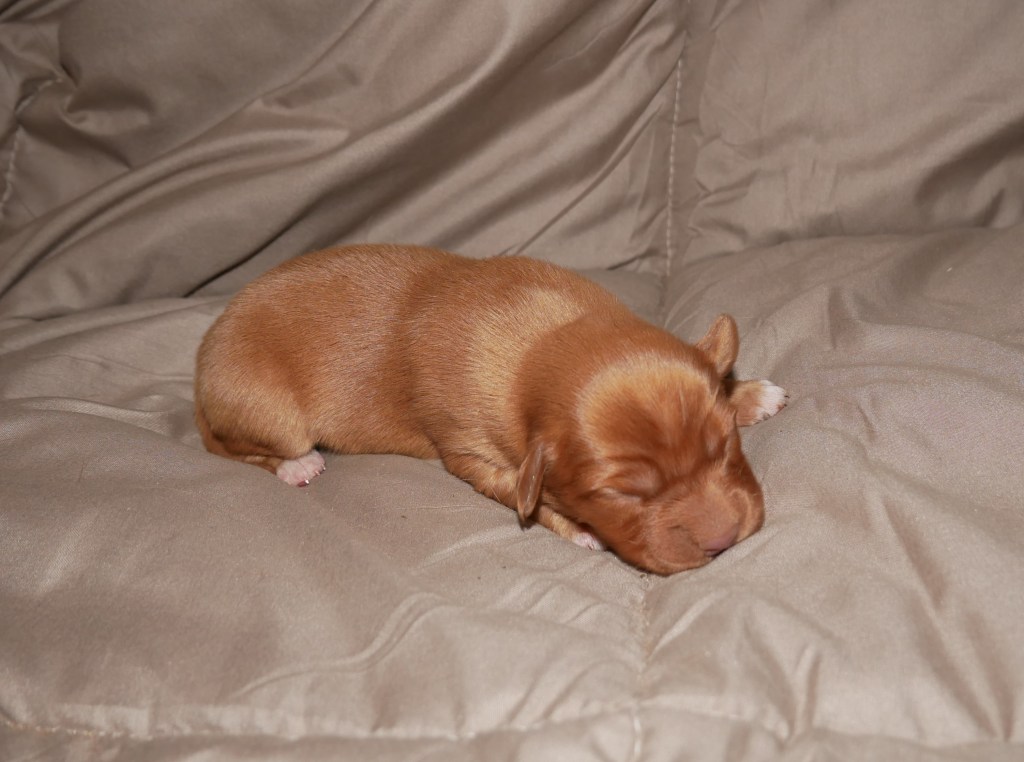 Week 5! This is a big week for us! We will start going outside and the puppies will start on softened kibble! Looks like we have a great week with some great weather! We are looking forward to it!