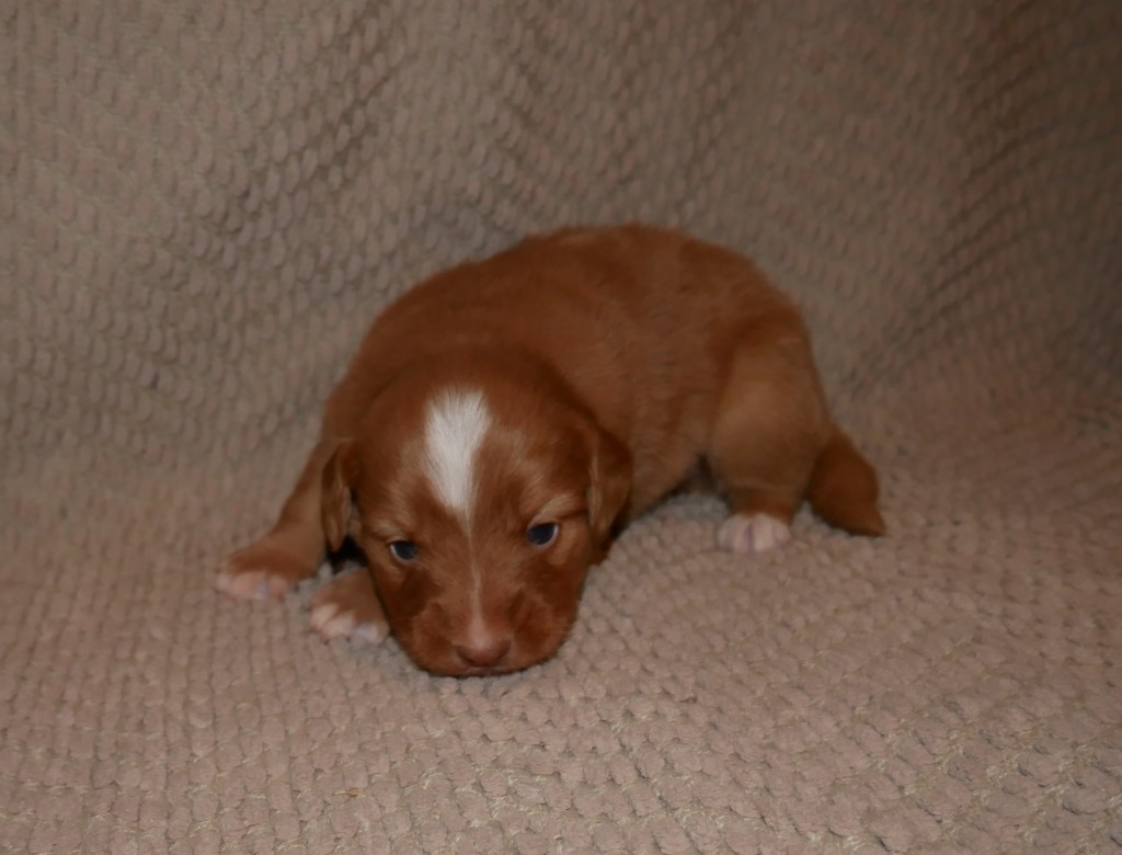 Week 2 is here! Happy New Year! Hope everyone has had a great holiday season! Everyone is doing great – eyes and ears are all wide open! They are growing and eating so well! Love all the white in this litter!