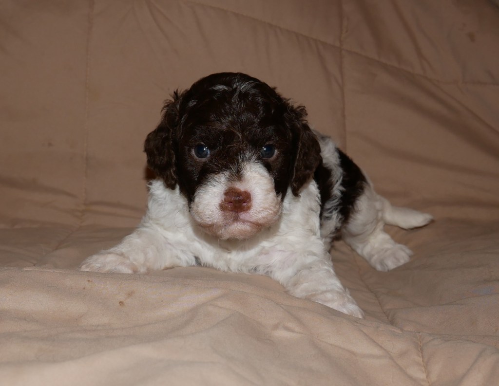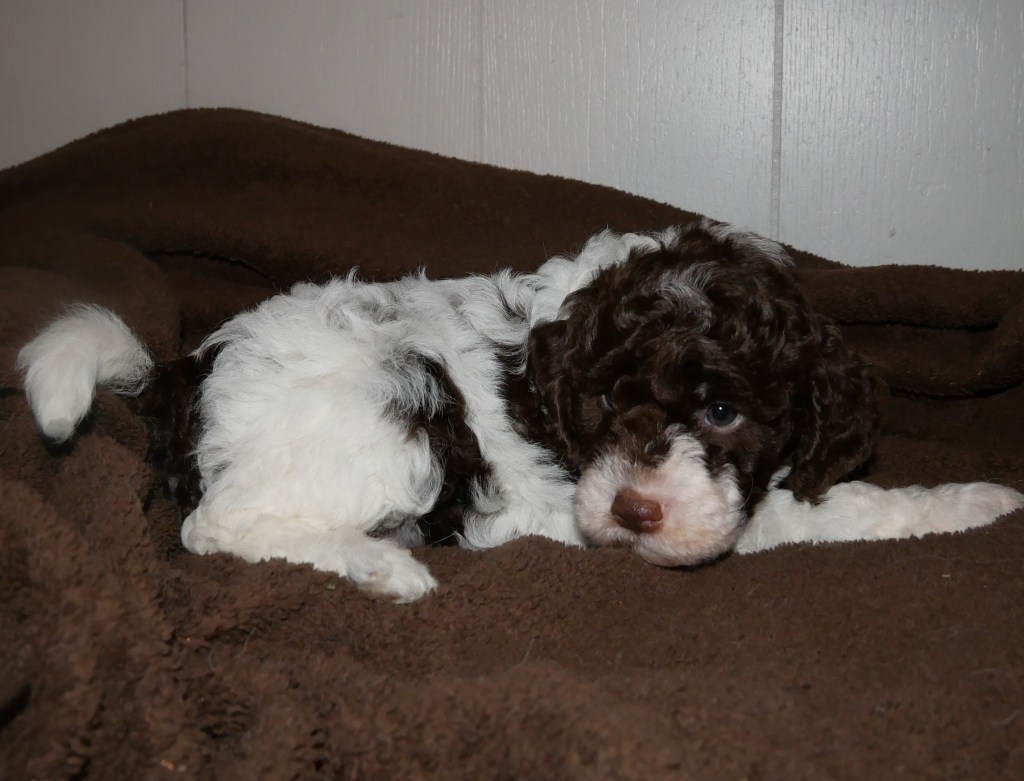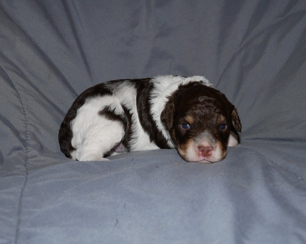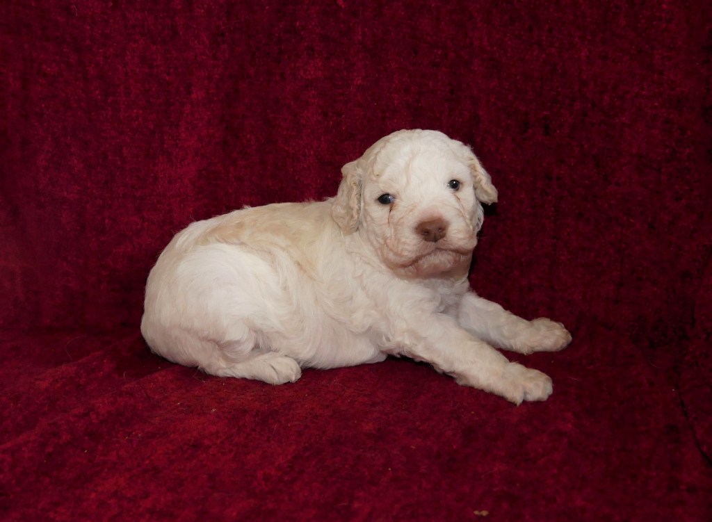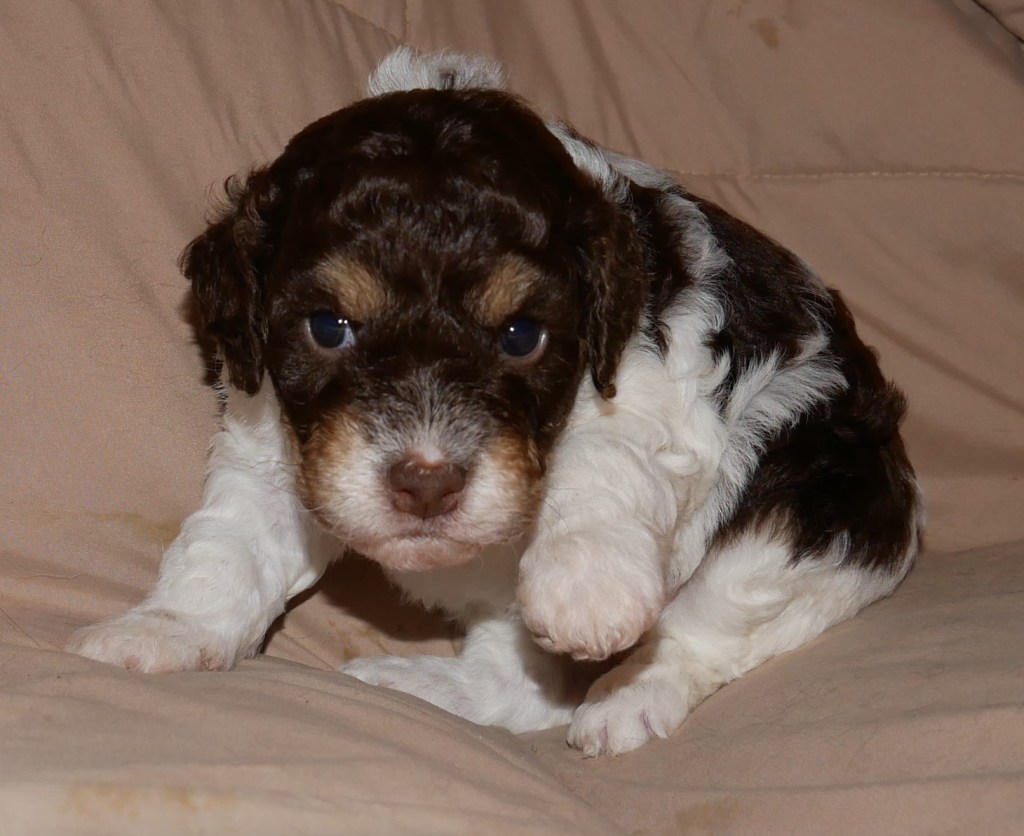 Week 4! We are halfway there! This litter got upgraded to their ‘big pup’ pen – these guys are growing up on us! They are playing and talking more and more each day! They are still on their momma and will be for the rest of this week. Next week we will introduce them to softened kibble.