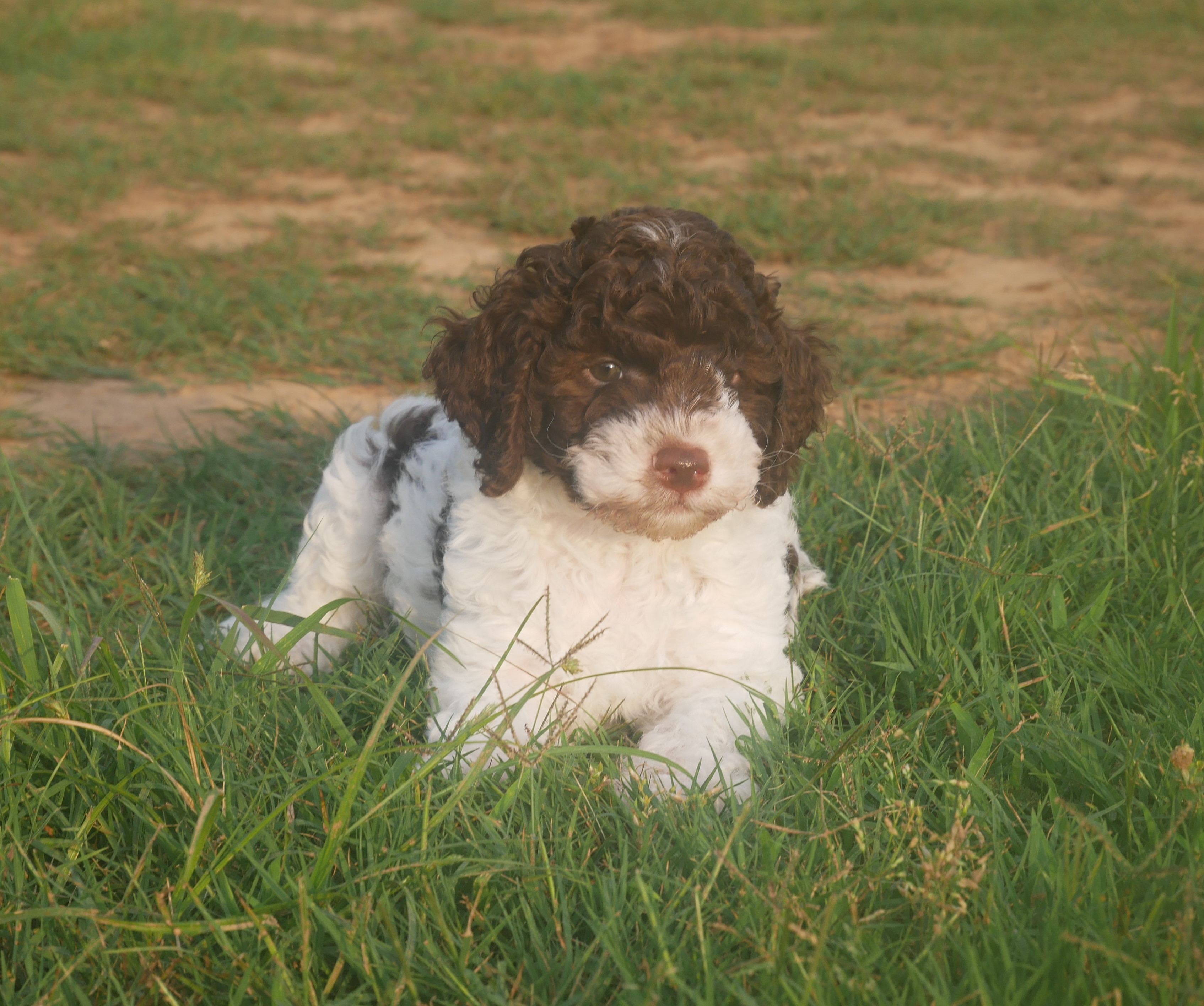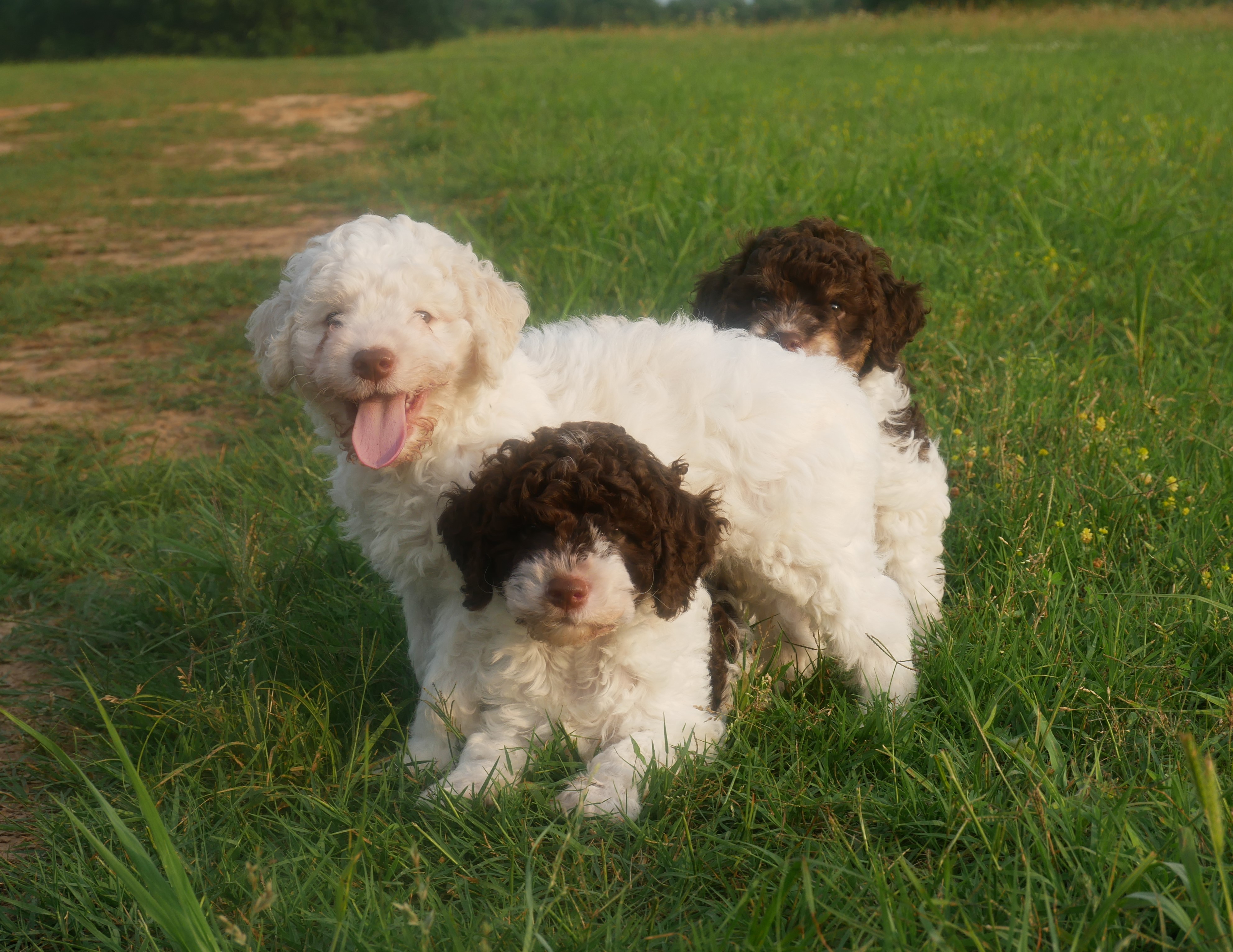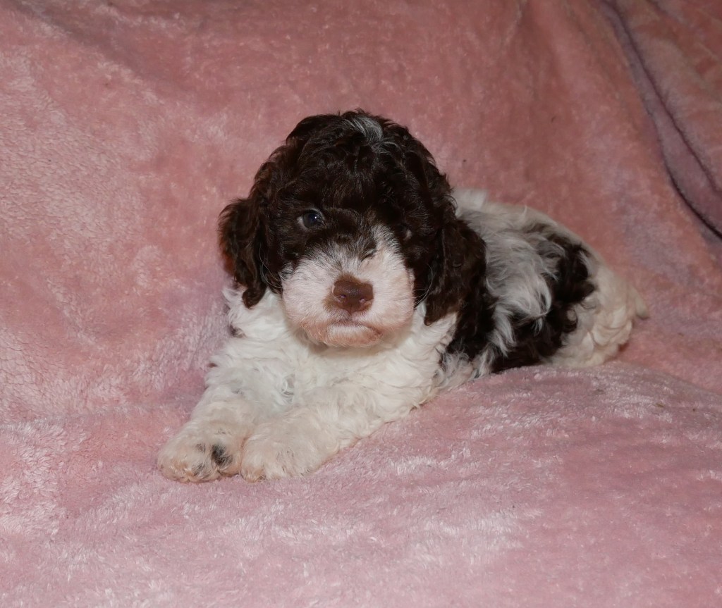 Week 4! We are halfway there! This litter got upgraded to their ‘big pup’ pen – these guys are growing up on us! They are playing and talking more and more each day! They are still on their momma and will be for the rest of this week. Next week we will introduce them to softened kibble.